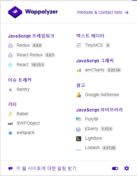 여러분도 자주 방문하는 사이트가 어떤 기술 스택을 가지고 있는지 궁금하지 않으신가요?