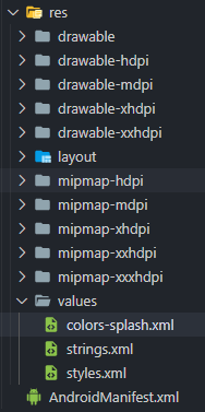 6-2. '@color/splashprimary'에 매핑되는 'colors-splash.xml' 파일을 'android/app/src/main/res/values' 경로에 생성합니다.