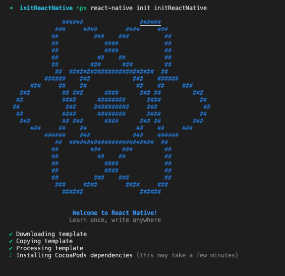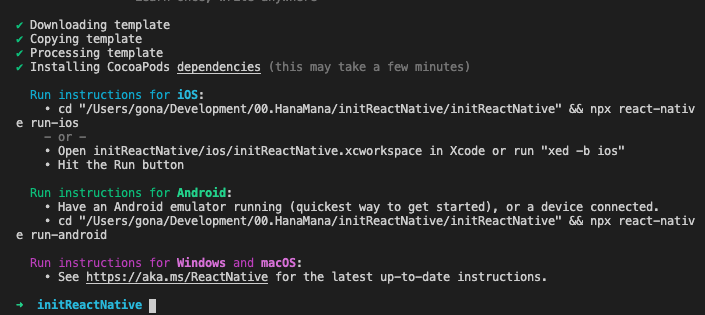 ➜ initReactNative npx react-native init initReactNative