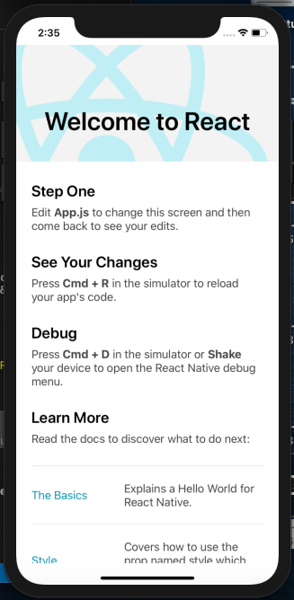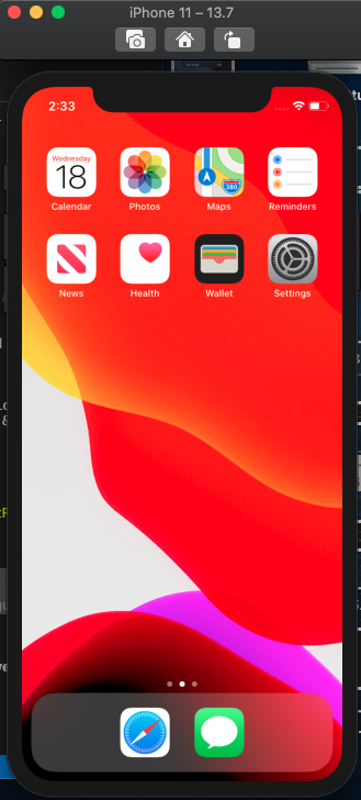 4. 이제 iOS 시뮬레이터에 앱이 설치되고 실행되게 됩니다.