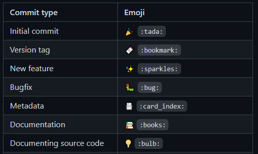 gitmoji 사이트를 북마크 해두고 필요할때마다 방문해서 사용하시면 됩니다.