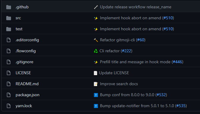 gitmoji를 적용하면 아래와 같이 직관적으로 커밋 내역을 확인할 수 있습니다.